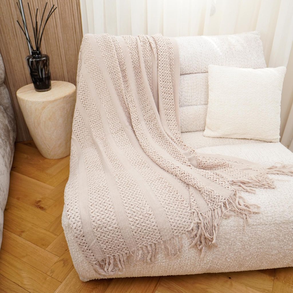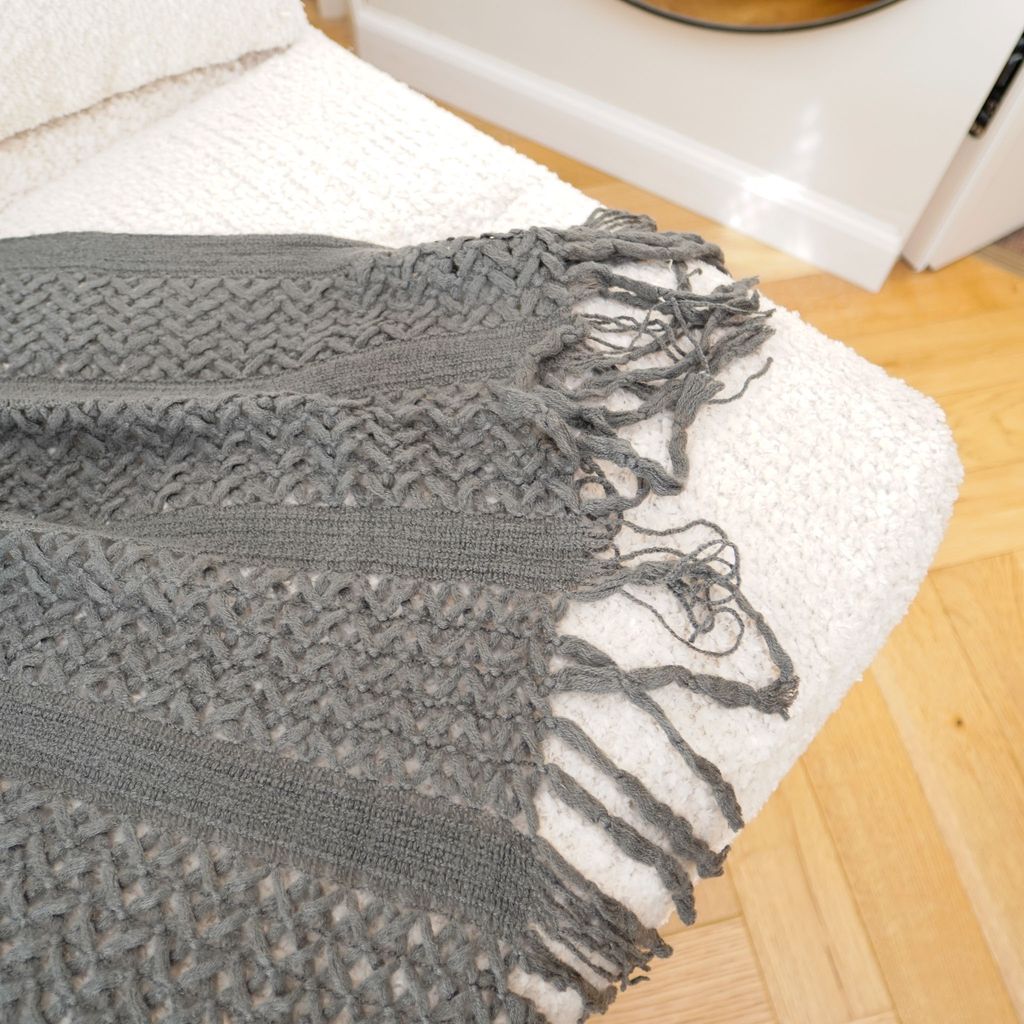 הסריגה העבה מעניקה תחושת רכות טבעית, והעיצוב הנקי משתלב בכל סגנון – בוהו, סקנדינבי או קלאסי.